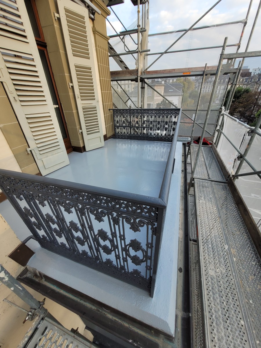 Rénovation de balcon Peinture de la barrière Résine au sol